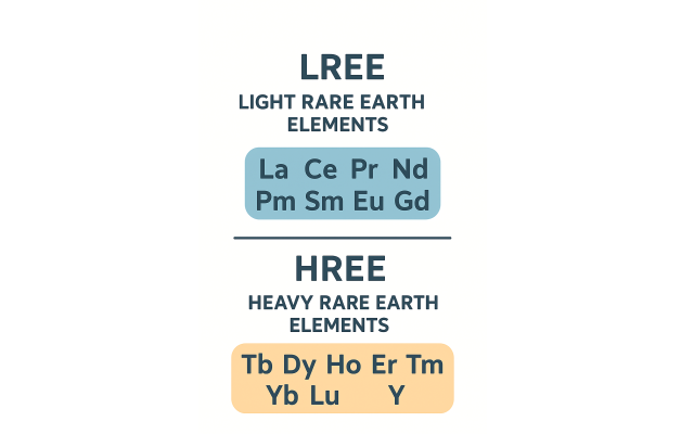 レアアースの種類は、大きく「軽希土類(LREE)」と「重希土類(HREE)」の2つに分類されます。17種類の希土類元素中でも元素ごとに性質や用途が異なるため、この分類はとても重要です。